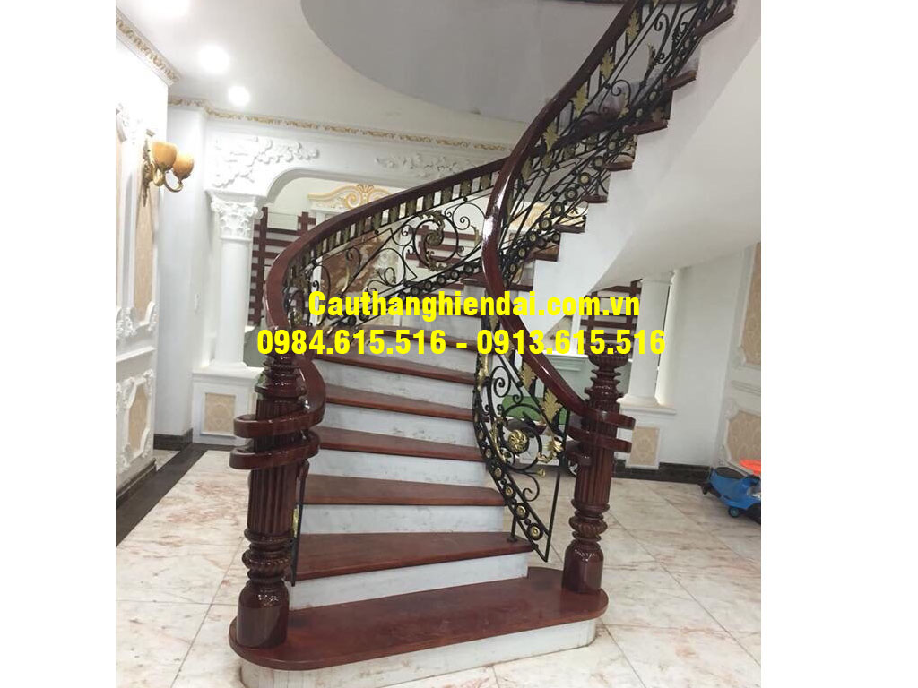 Cầu thang sắt nghệ thuật -tay vịn gỗ lim nam phi